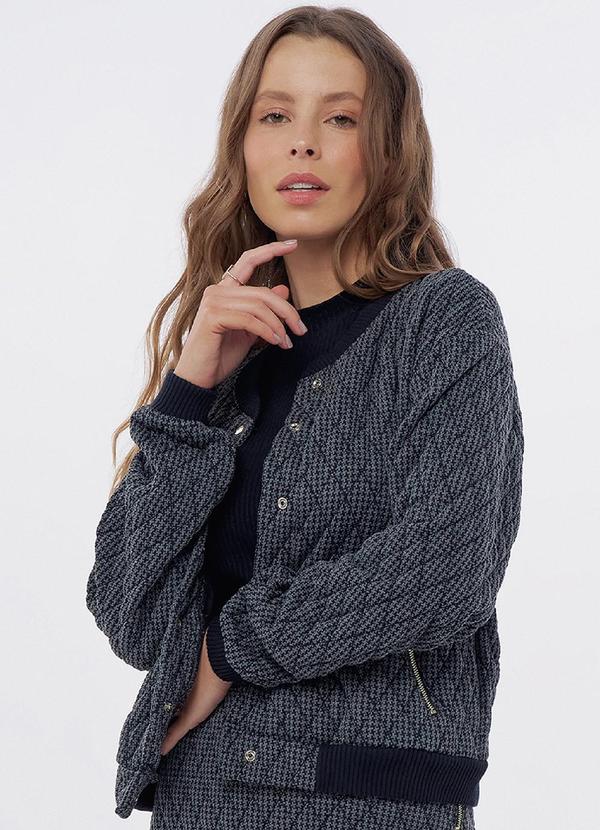 Linzzi - Jaqueta Bomber em Jacquard de Metalasse Preto