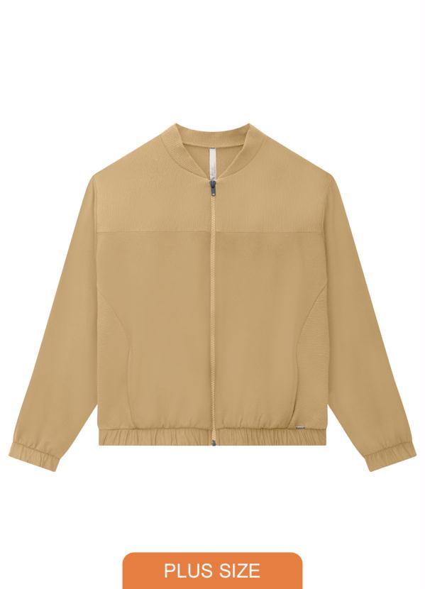 Lunender Mais Mulher - Jaqueta Bomber Plus Size em Moletom S Bege