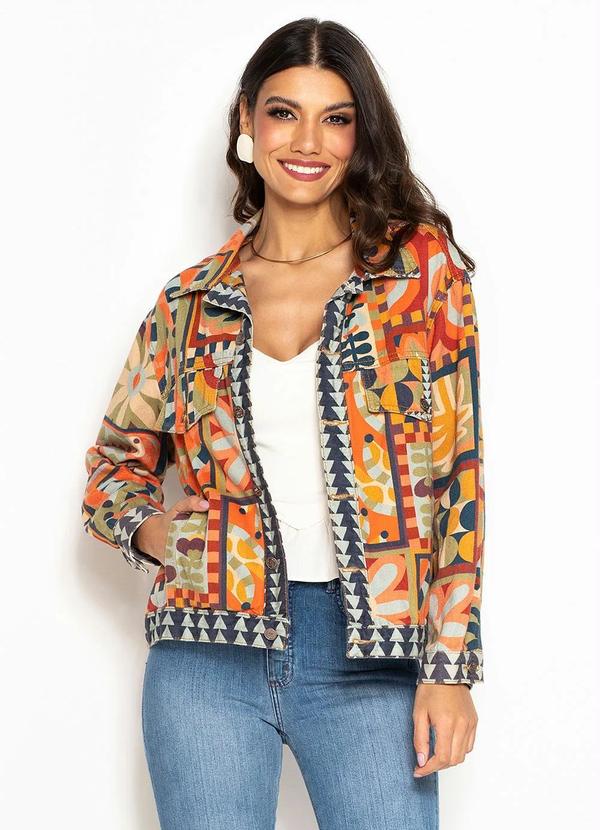 Farm - Jaqueta de Sarja Gráfico Tropical Laranja