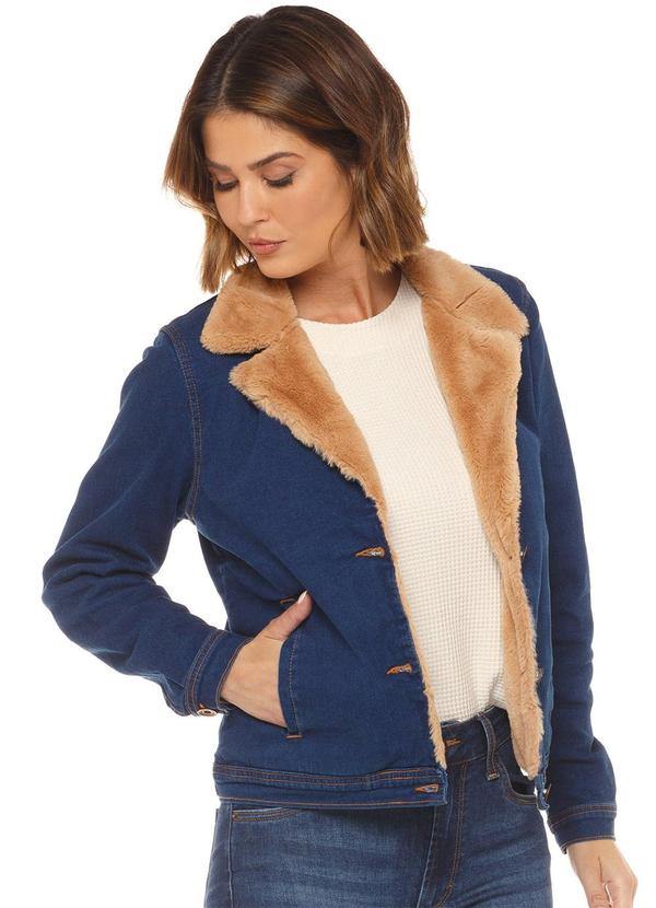 Rafree - Jaqueta Fem Jeans com Pelo Azul