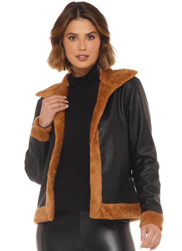 Rafree - Jaqueta Fem Pu com Pelo Preto
