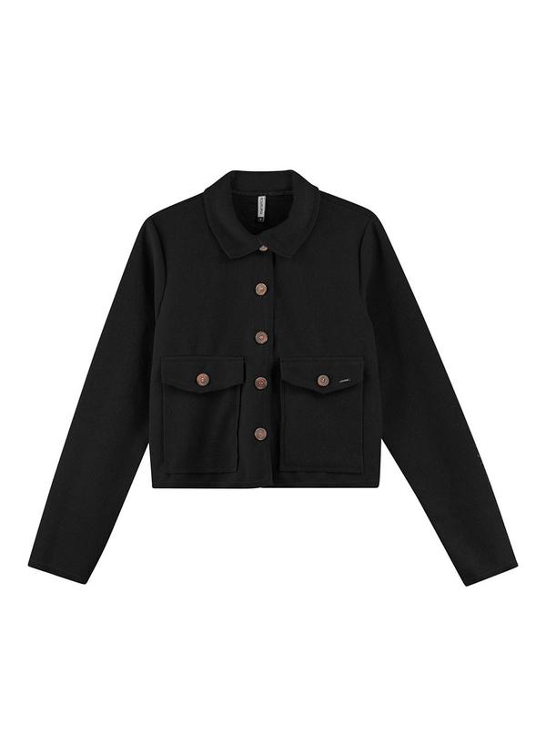 Marialícia - Jaqueta Feminina Bolso Lateral Preto