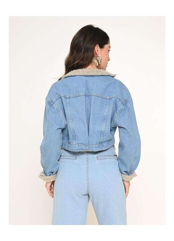 Jaqueta Feminina Jeans Cropped com Pelo, recortes e bolso embutido funcional - Composição: 100% algodão.