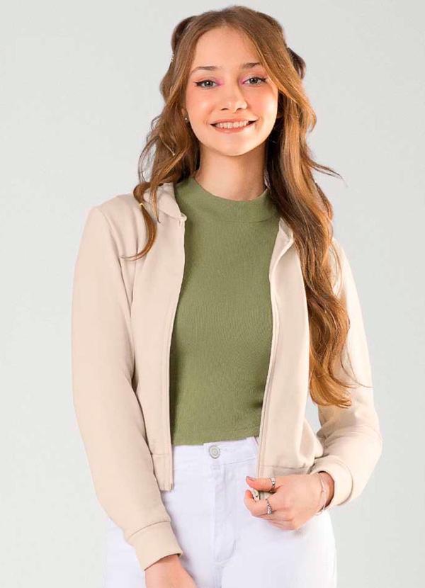 Cativa - Jaqueta Feminina Juvenil com Zíper Bege