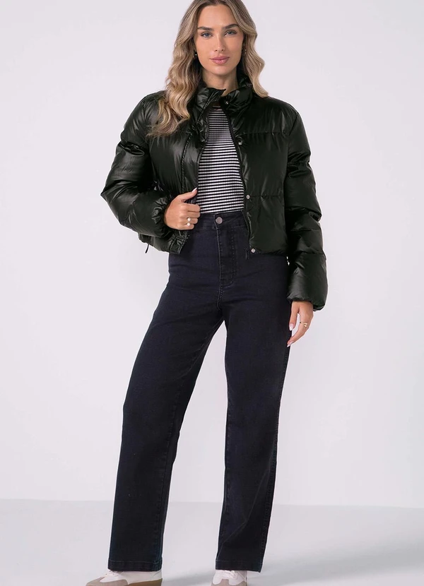 Marialícia - Jaqueta Feminina Puffer com Regulagem Preto