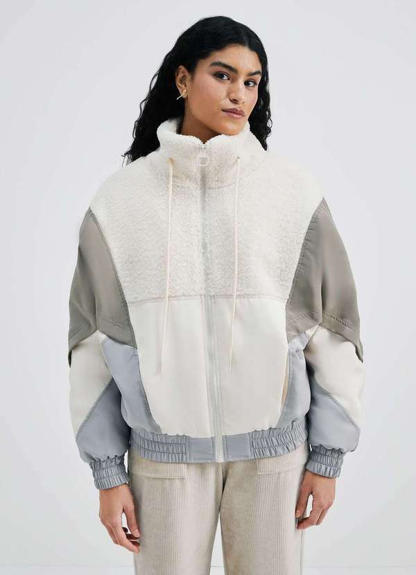 Hering - Jaqueta Feminina Tricolor em Nylon com Pelucia Branco