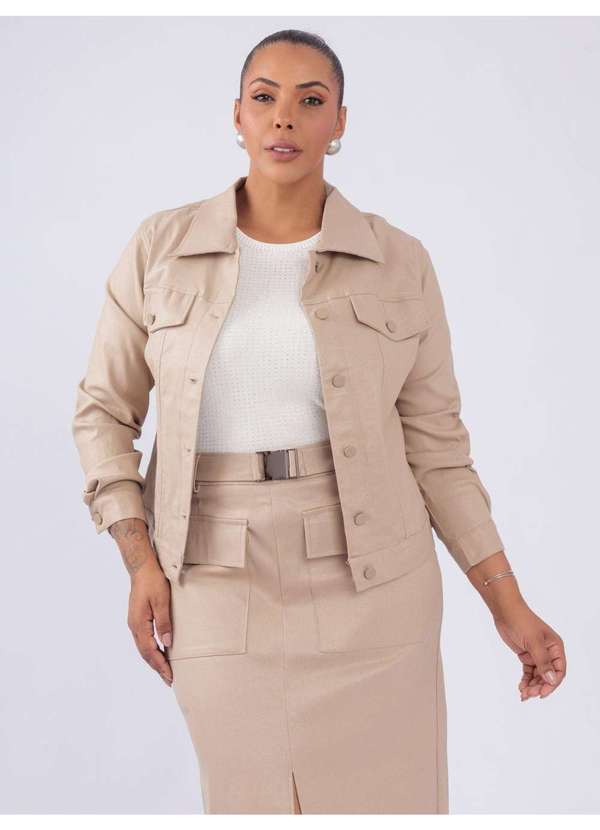 Susie Modas - Jaqueta Glitter Resinada c/ Botão Bege