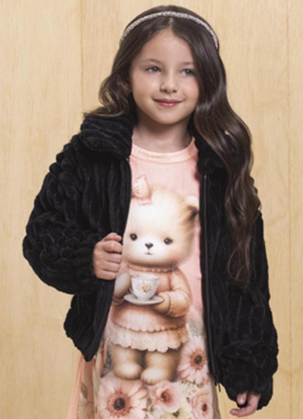 Milli e Nina - Jaqueta Infantil em Pelo Canelado Preto