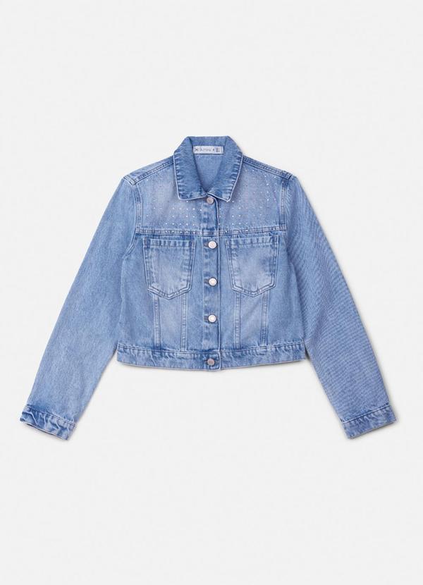 Authoria - Jaqueta Jeans Azul com Strass Azul