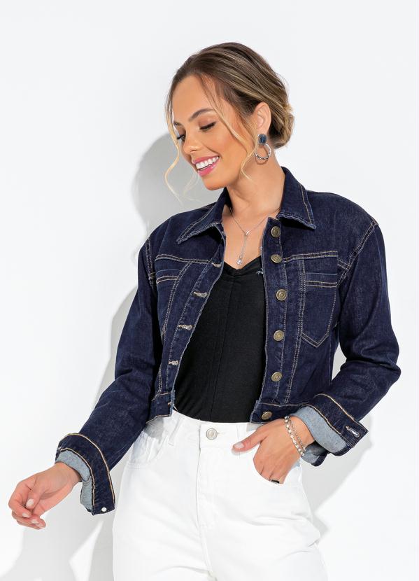 Sawary Jeans - Jaqueta Jeans Azul Escuro com Botões