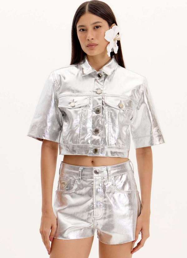 Lança Perfume - Jaqueta Jeans com Manga Curta Metalizada A2131