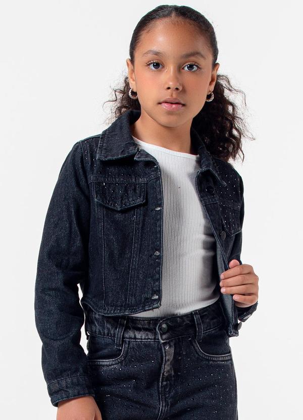 Sun Place - Jaqueta Jeans com Strass Infantil Menina Preto