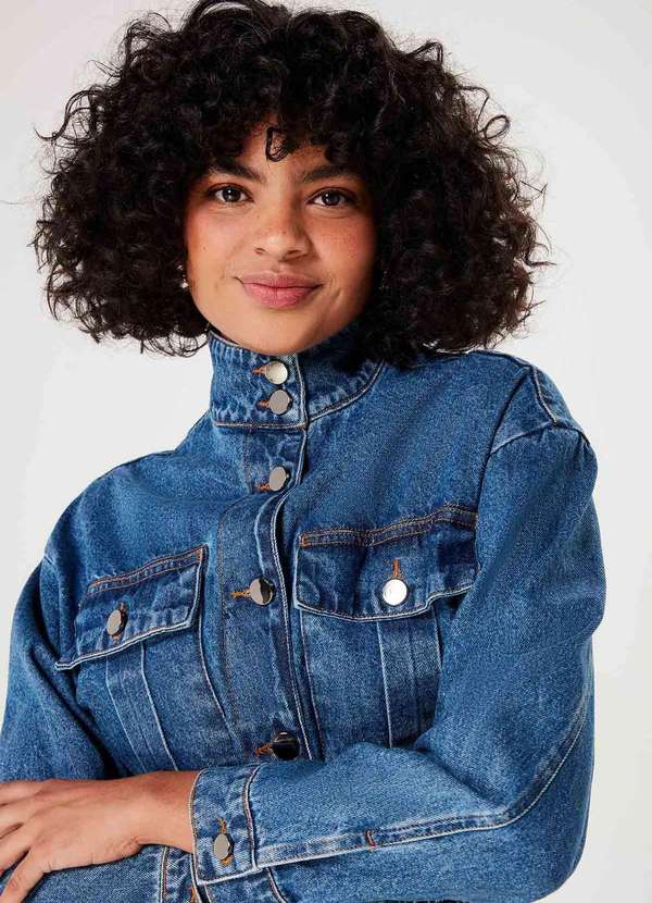 Hering - Jaqueta Jeans Feminina Cropped com Gola Alta Azul