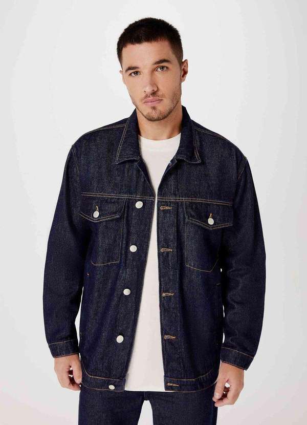 Hering - Jaqueta Jeans Masculina Trucker Azul