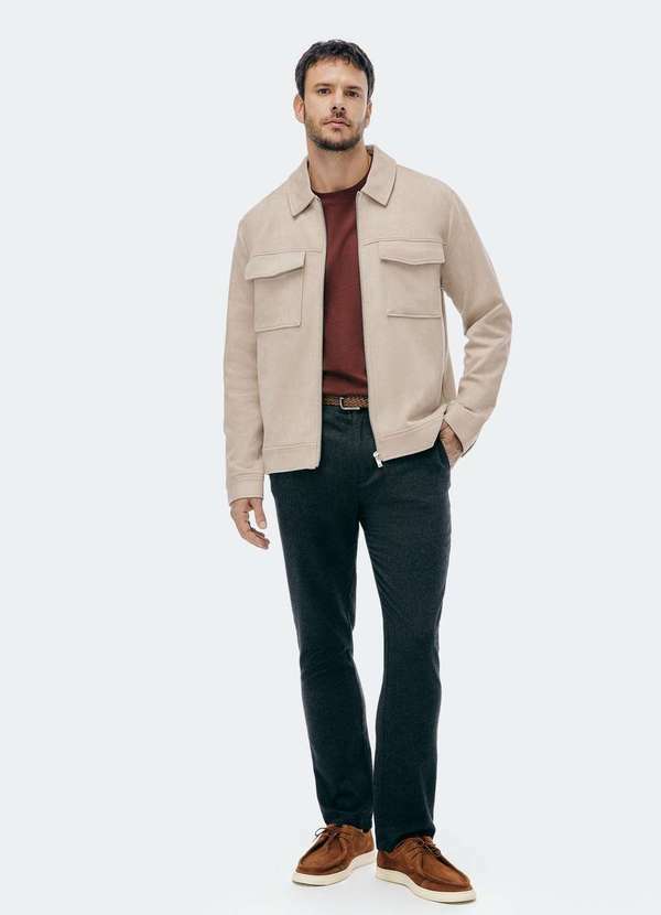 Jaqueta masculina confeccionada em suede leve. Possui modelagem regular, bolsos frontais e botões na cor da peça. Perfeita para compor looks casuais e modernos. Detalhes da peça: Em suede Modelagem regular Manga longa Gola com lapela Abotoamento frontal