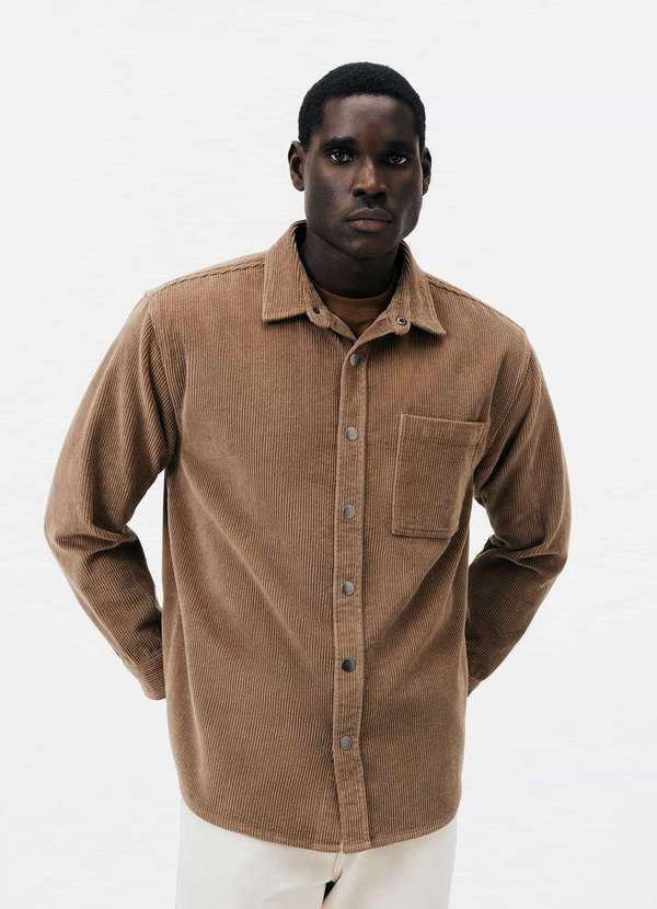 Hering - Jaqueta Masculina Overshirt em Veludo Cotele Marrom