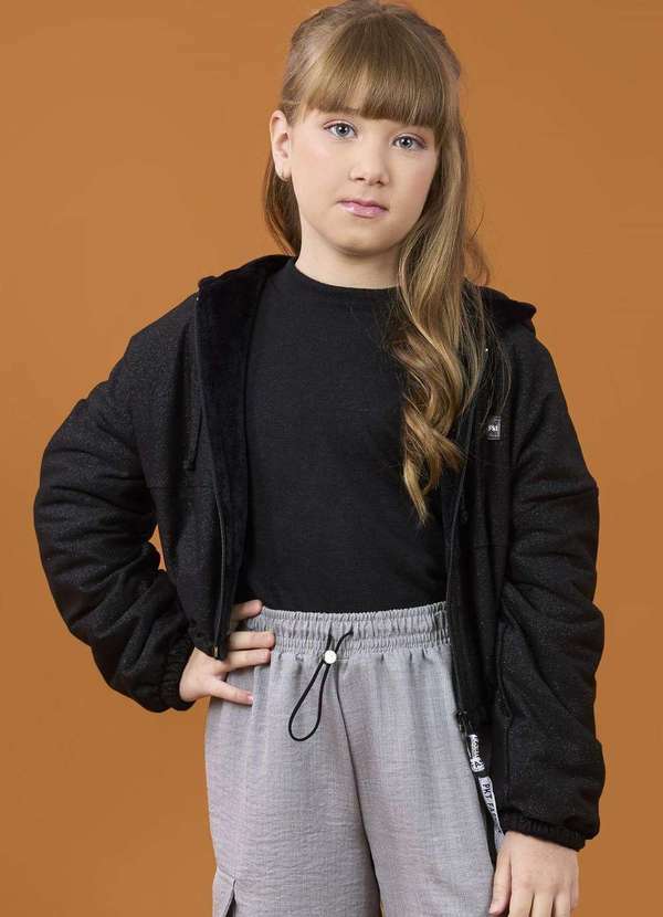 Ok e Pakita - Jaqueta Menina Preto Inverno Pakita Preto