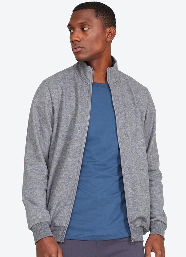 Basicamente - Jaqueta Moletom Felpa Masculina Mescla Escuro