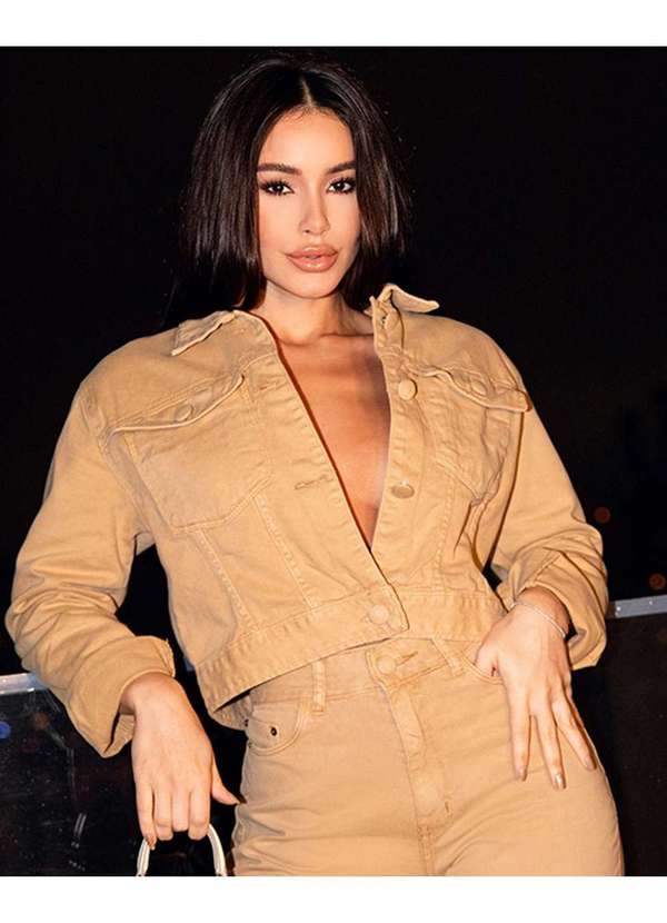 Consciência - Jaqueta Sarja Cropped Feminina Basica Bege