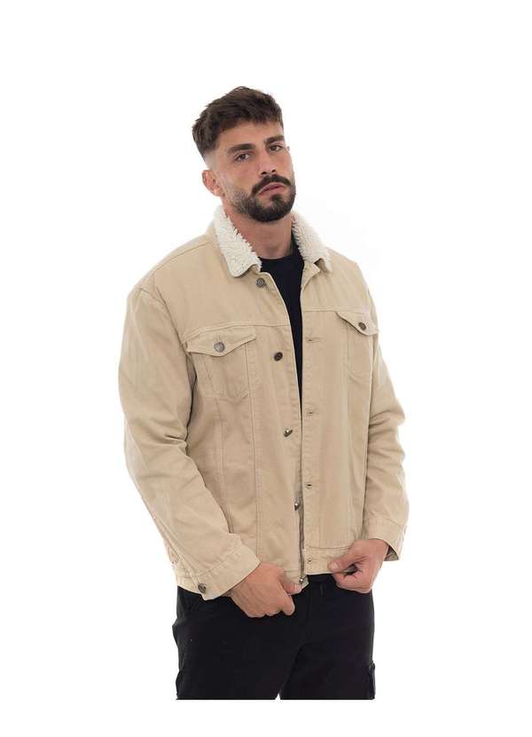 Consciência - Jaqueta Sarja Rider Masculina com Pelugem Interna Bege