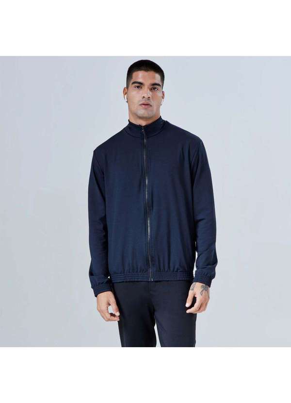 Jaqueta de shape reto em algodão com elastano com gola alta, com bolsos laterais, punhos e barras em elástico. A matéria prima possui interior felpado para maior conforto térmico.