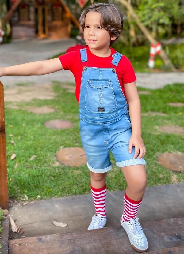 Sun Place - Jardineira Curta Jeans Infantil Menino Azul