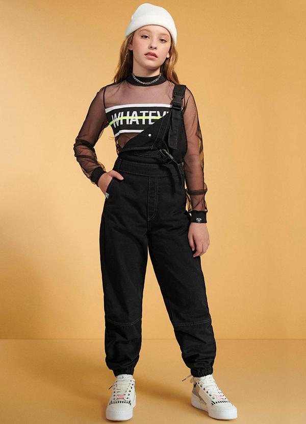 I Am - Jardineira Feminino Sarja Preto