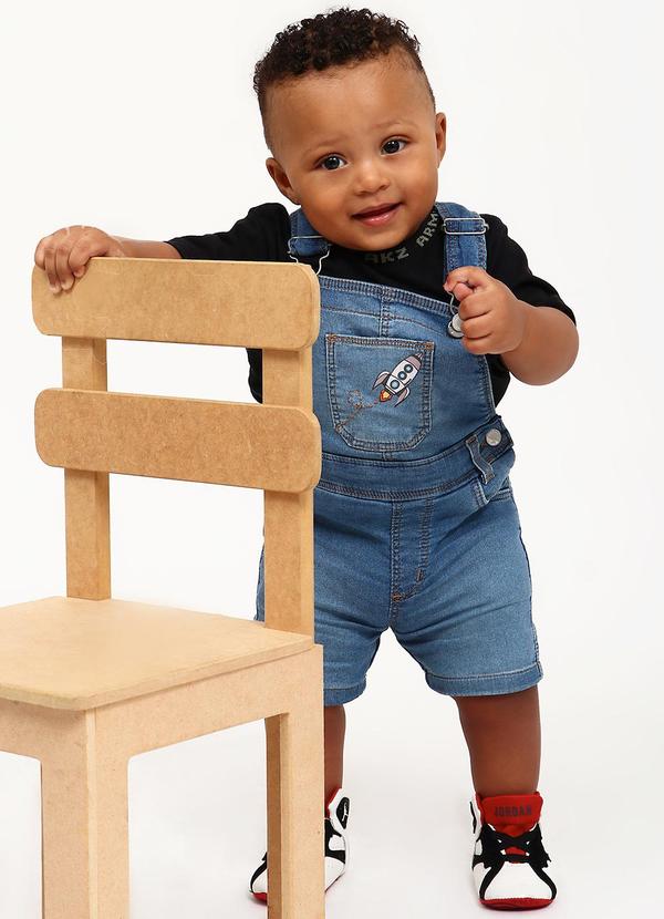 Sun Place - Jardineira Jeans Malha Denim Bebê Menino Azul