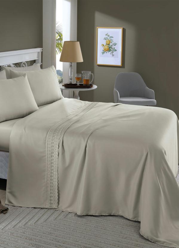 Mundo Lar - Jogo de Cama 200 Fios Bege Queen 4 Peças
