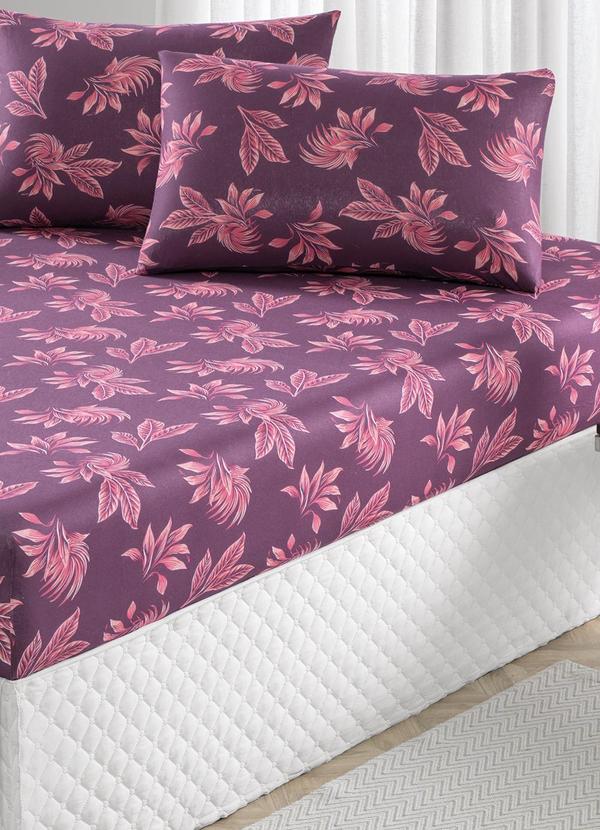 Portallar - Jogo de Cama Queen Folhas Bordô 3 Peças