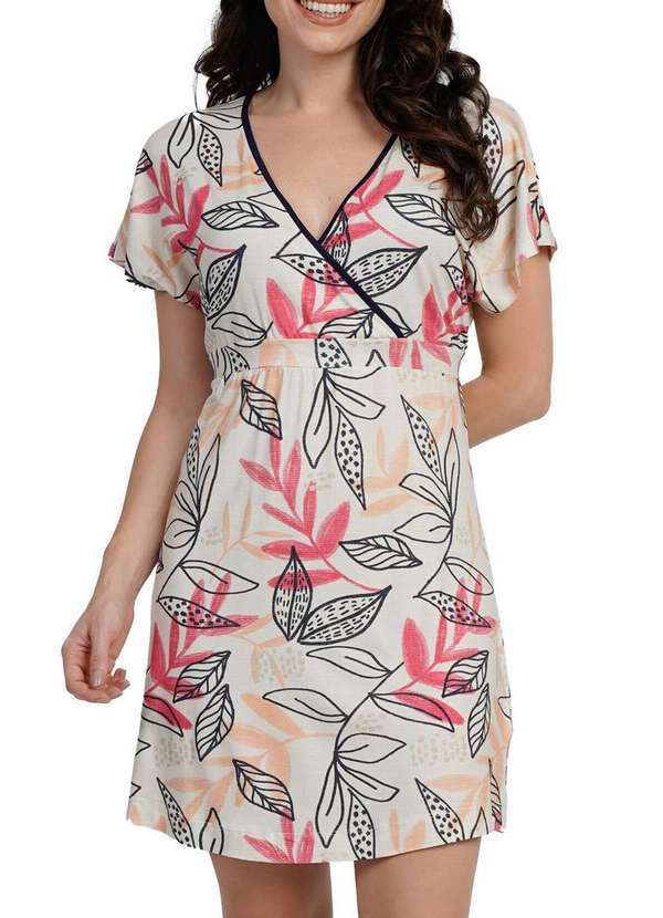 Características: Kaftan Feminino Curto Viscolycra estampa floral Tarsila com detalhes pretos Leveza com toque sofisticação Ideal para quem valoriza conforto com estilo. Os detalhes em preto no acabamento criam um contraste elegante e discreto, valorizando o design da peça. A modelagem ampla oferece liberdade de movimentos e um caimento fluido, perfeito para momentos de descanso O tecido em viscolycra combina a suavidade e o frescor da viscose com a leve elasticidade, oferecendo um caimento perfeito e uma sensação de conforto extremo. Sua composição garante liberdade de movimentos, toque macio e leveza, tornando-se ideal para noites de descanso e momentos de relaxamento. Além disso, a viscolycra proporciona durabilidade, mantendo a peça sempre bonita e confortável mesmo apos varias lavagens Composição: 96% Viscose e 04% Elastano