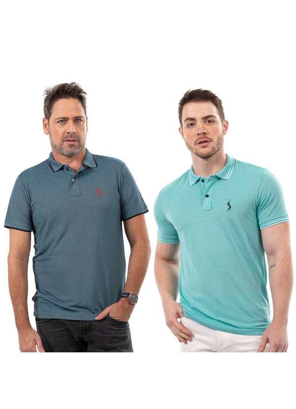 John Pull - Kit 2 Camisa Gola Polo Masculina Casual Moderna Reta Estilo Azul/Verde
