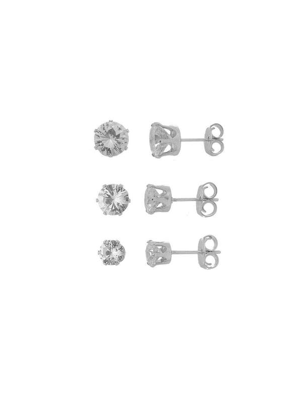 Piuka - Kit 3 Brincos Pontos de Luz Zirconia Folheado em Rodio Branco Prata