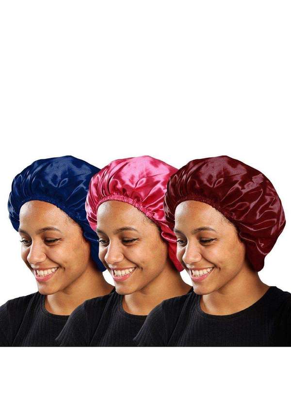 Pmc - Kit 3 Toucas de Cetim Pmc Antifrizz com Elástico Rosa
