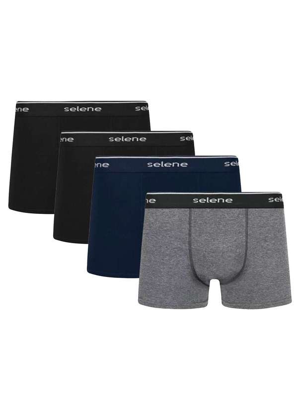 Selene - Kit 4 Cuecas Boxer Selene Algodão Masculino Preto