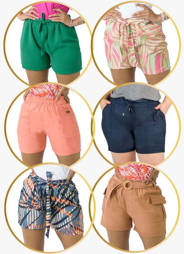 Looks Catwalk - Kit 5 Shorts Modelos Sortidos Feminino Bermuda Bolso Moda - Sortido