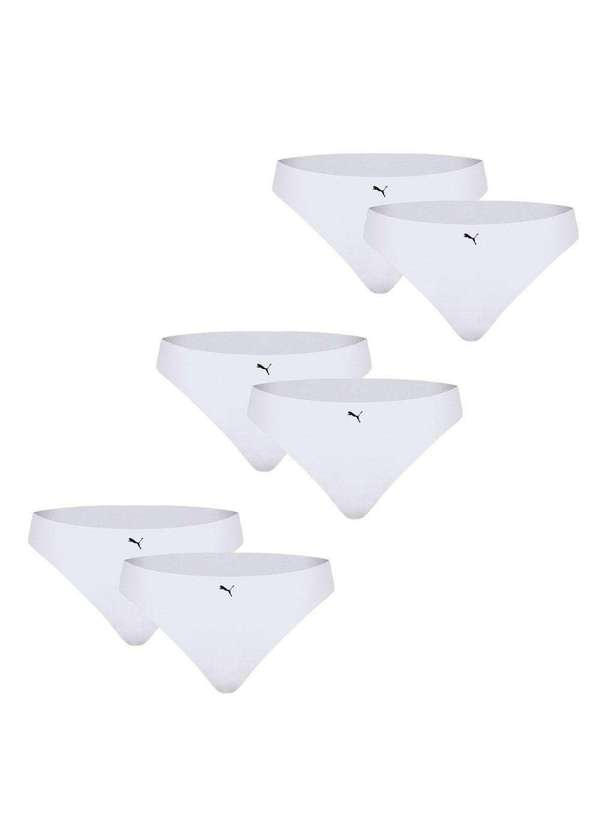 Puma - Kit 6 Calcinhas Puma Corte a Fio Feminina Branco