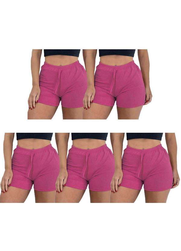Pmc - Kit Atacado 5 Shorts Pmc Canelado Feminino Rosa