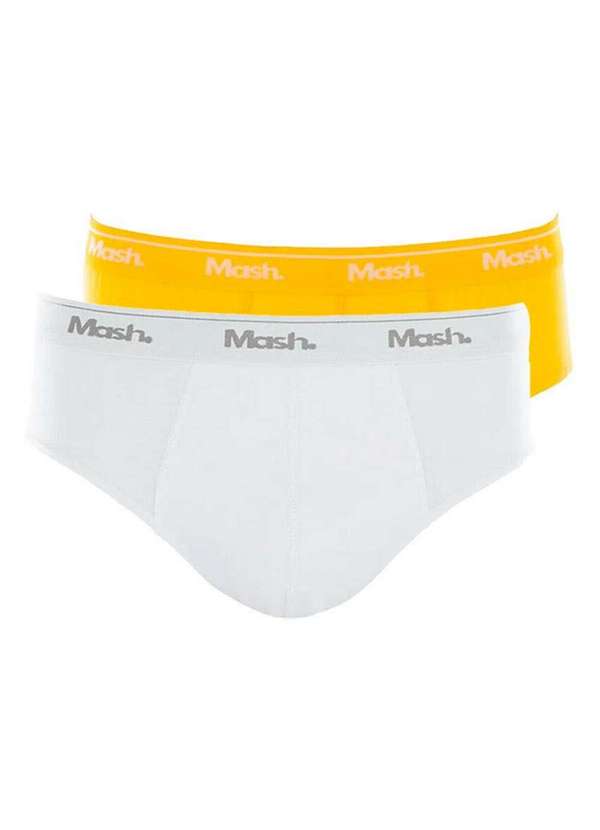 Mash - Kit com 2 Cuecas Slip Mash 073.58 Branco-Amarelo