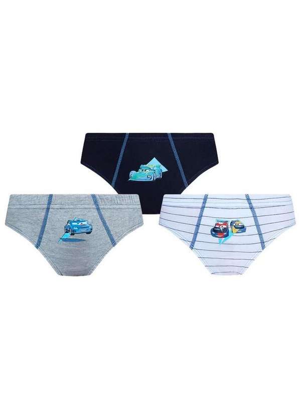Disney - Kit com 3 Cuecas Infantil Slip Carros Lupo 175-089 0955-Mescla-Marinho-Branco