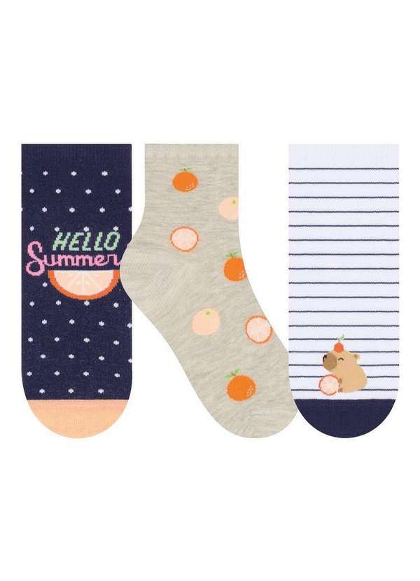 Selene - Kit 3 pares de Meias Cano Médio Selene 7740-001 999-Marinho-Mescla-Branco