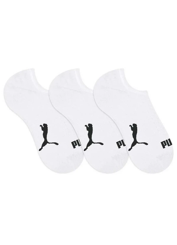 Características: Kit com 3 pares de meias Puma. Confeccionada em algodão. Costura fina. Calcanhar verdadeiro. Maior conforto e ajuste perfeito. Cano: Invisível. Composição: 65% Algodão, 30% Poliamida, 03% Elastano e 02% Outra fibra.