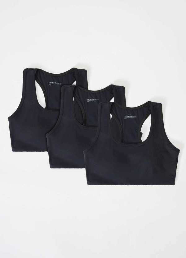 Hering - Kit com 3 Tops Esportivos Feminino Nadador Preto