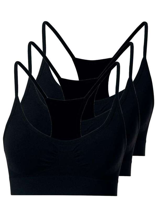 She - Kit com 3 Tops Nadador sem Aro e sem Bojo She 753.02 Preto