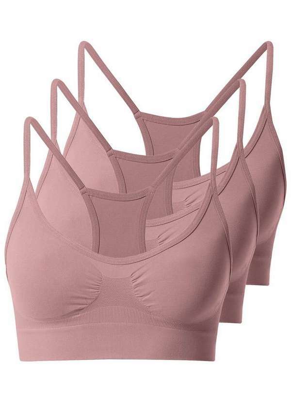 She - Kit com 3 Tops Nadador sem Aro e sem Bojo She 753.02 Rosa-Queimado