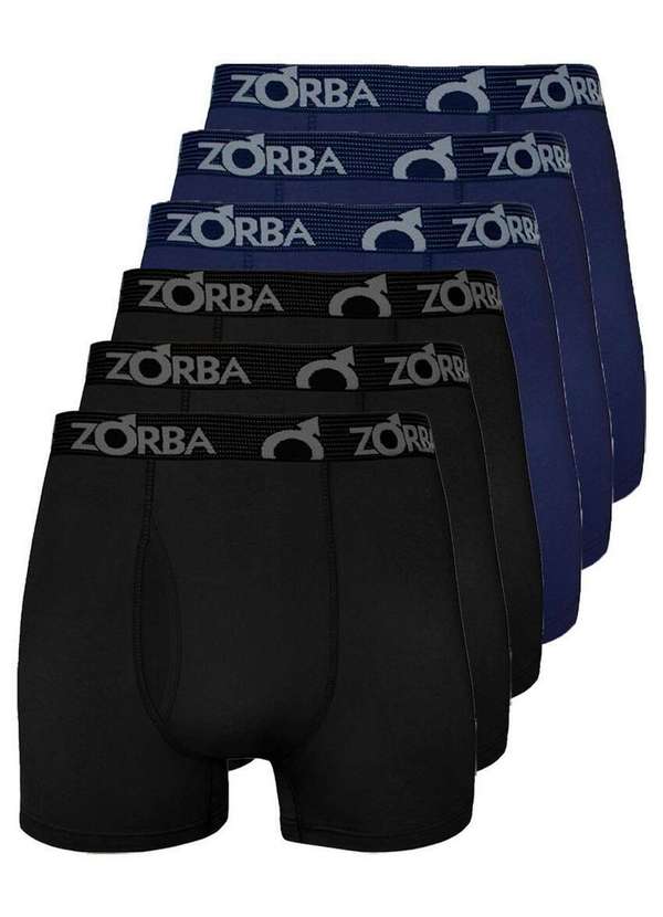 Zorba - Kit com 6 Cuecas Boxer com Abertura Zorba 848 Preto-Marinho