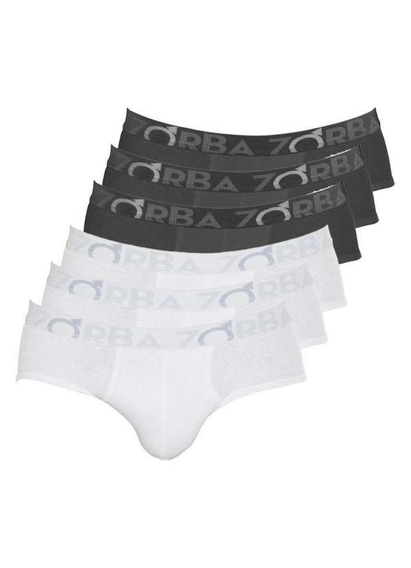 Zorba - Kit com 6 Cuecas Slip Zorba 643 Branco-Chumbo