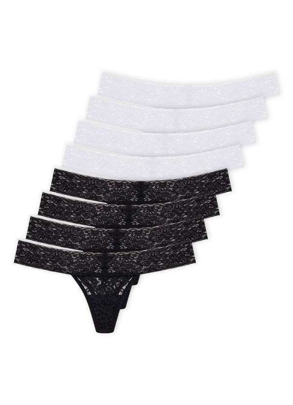 Hope - Kit com 8 Calcinhas Fio Dental Hope L 37730 Preto-Branco