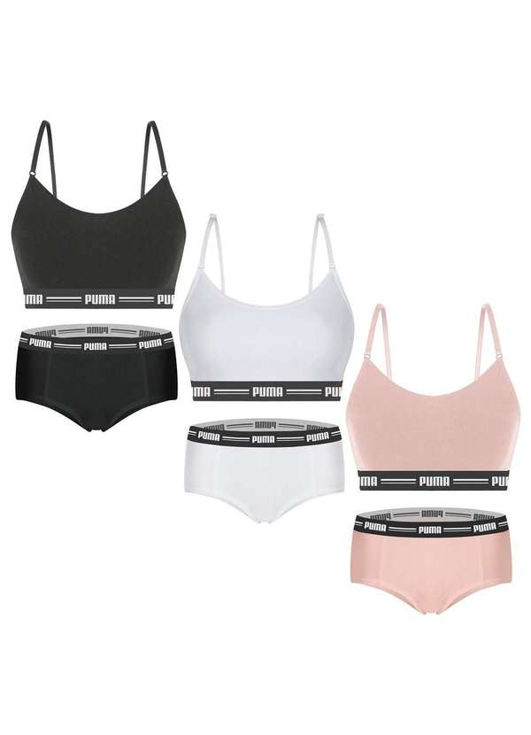 Puma - Kit Puma 3 Tops Modal Stretch e 3 Calcinhas Mini Boxer Feminino Preto