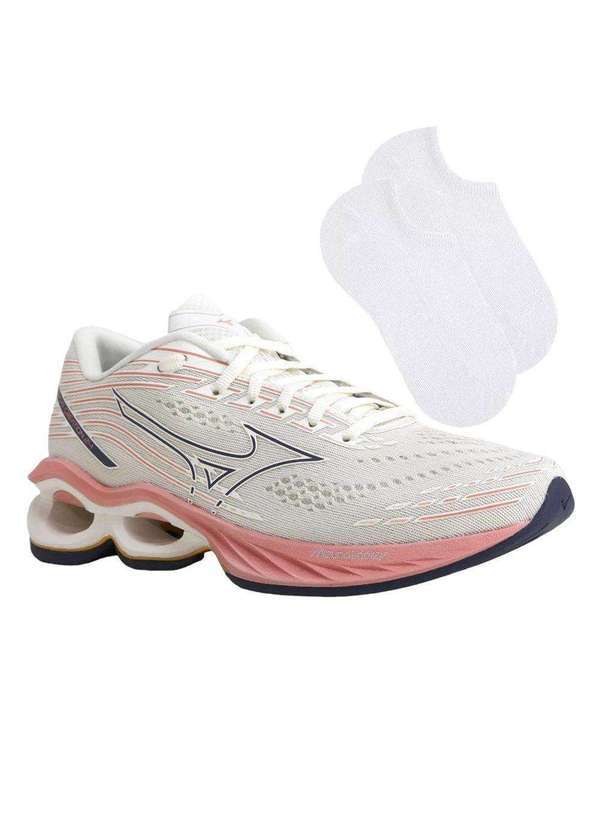 Mizuno - Kit Tênis Mizuno Wave Creation 24 Feminino e par de Meia Bege